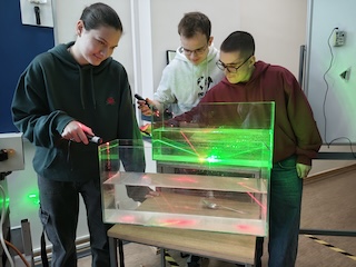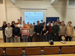 W dniu 15 marca 2025 r. na Uniwersytecie Morskim w Gdyni juz kolejny raz odbyło się spotkanie akademickie z fizyki pt. Dźwięk w akcji - tajemnice fal akustycznych. Na wykładzie urozmaiconym o pokazy uczniowie dowiedzieli się co to jest dźwięk. Poznali podstawowe wielkości charakteryzujące fale akustyczne, ich zastosowanie i sposób generowania dźwięku przez instrumenty muzyczne. Na zajęciach praktycznych uczniowie mieli możliwość samodzielnego przeprowadzenia eksperymentów mających na celu wyznaczenie szybkości dźwięku w powietrzu i częstotliwości dźwięków oktawy oraz porównania ich z teorią.