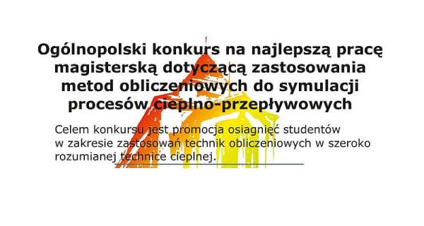 Katedra Techniki Cieplnej Politechniki Śląskiej wraz z partnerami przemysłowymi ogłasza ogólnopolski konkurs na najlepszą pracę magisterską dotyczącą zastosowania metod obliczeniowych do symulacji procesów cieplno-przepływowych. Celem konkursu jest promocja osiągnięć studentów w zakresie zastosowań technik obliczeniowych w szeroko rozumianej technice cieplnej. Dzięki obecności w jury konkursu przedstawicieli przemysłu i firm softwarowych, informacje o najlepszych pracach i ich autorach będą docierać do potencjalnych pracodawców.