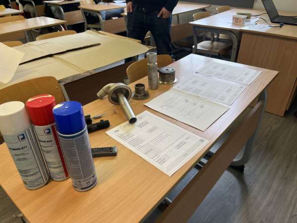 W ramach zajęć odbyły się pokaz badań nieniszczących złączy spawanych oraz szkolenie studentów w zakresie identyfikacji niezgodności spawalniczych i interpretacji norm. Pokaz obejmował badanie spoin metodą wizualną VT oraz metodą PT - penetracyjną, następnie studenci otrzymali próbki złączy spawanych do badania oraz zostali poddani praktycznemu szkoleniu z identyfikacji niezgodności spawalniczych wg obowiązujących norm. Podczas prezentacji omówiono znaczenie poszczególnych norm i wytycznych dotyczących spawania oraz jak interpretować wyniki badań w kontekście tych norm.