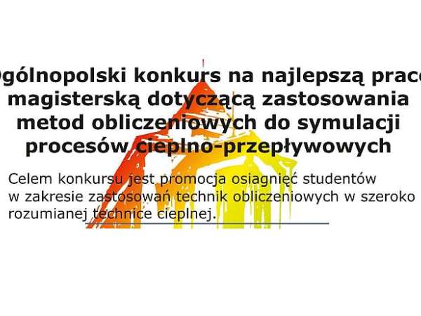Katedra Techniki Cieplnej Politechniki Śląskiej wraz z partnerami przemysłowymi ogłasza ogólnopolski konkurs na najlepszą pracę magisterską dotyczącą zastosowania metod obliczeniowych do symulacji procesów cieplno-przepływowych. Celem konkursu jest promocja osiągnięć studentów w zakresie zastosowań technik obliczeniowych w szeroko rozumianej technice cieplnej. Dzięki obecności w jury konkursu przedstawicieli przemysłu i firm softwarowych, informacje o najlepszych pracach i ich autorach będą docierać do potencjalnych pracodawców.