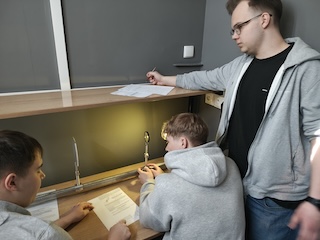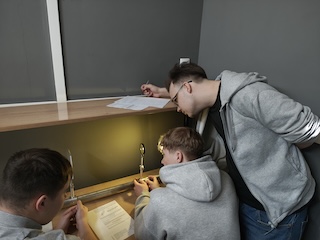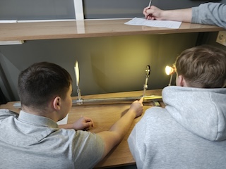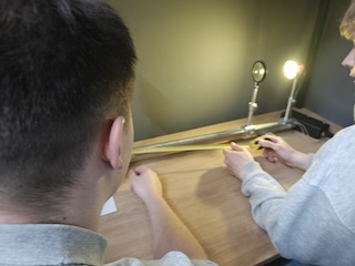 Tym razem na zajęciach warsztatowych uczniowie mieli okazję poszerzyć wiedzę z zakresu optyki. W części praktycznej zajęć uczniowie samodzielnie przeprowadzili pomiary mające na celu wyznaczenie ogniskowej soczewki. Przeprowadzali też eksperymenty z użyciem elementów optycznych. W trakcie doświadczeń mieli okazję obserwować, jak soczewki skupiają i rozpraszają światło i jak zwierciadła tworzą różne obrazy.