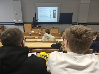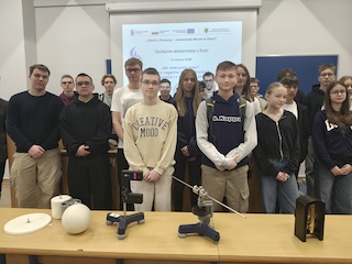 W dniu 15 marca 2025 r. na Uniwersytecie Morskim w Gdyni juz kolejny raz odbyło się spotkanie akademickie z fizyki pt. Dźwięk w akcji - tajemnice fal akustycznych. Na wykładzie urozmaiconym o pokazy uczniowie dowiedzieli się co to jest dźwięk. Poznali podstawowe wielkości charakteryzujące fale akustyczne, ich zastosowanie i sposób generowania dźwięku przez instrumenty muzyczne. Na zajęciach praktycznych uczniowie mieli możliwość samodzielnego przeprowadzenia eksperymentów mających na celu wyznaczenie szybkości dźwięku w powietrzu i częstotliwości dźwięków oktawy oraz porównania ich z teorią.