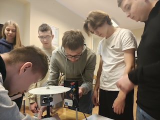 Na zajęciach warsztatowych uczniowie mieli okazję zgłębić wiedzę z zakresu fal dźwiękowych. W części praktycznej zajęć uczniowie samodzielnie przeprowadzili pomiary, które pozwoliły wyznaczyć szybkość dźwięku w powietrzu.